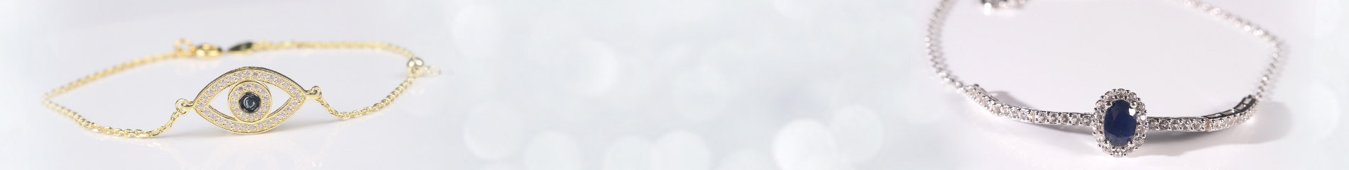 Evil Eye Sapphire Bracelet This simple and striking Evil Eye design features three different stones - pale and deep blue created 1.1 mm sapphire,...