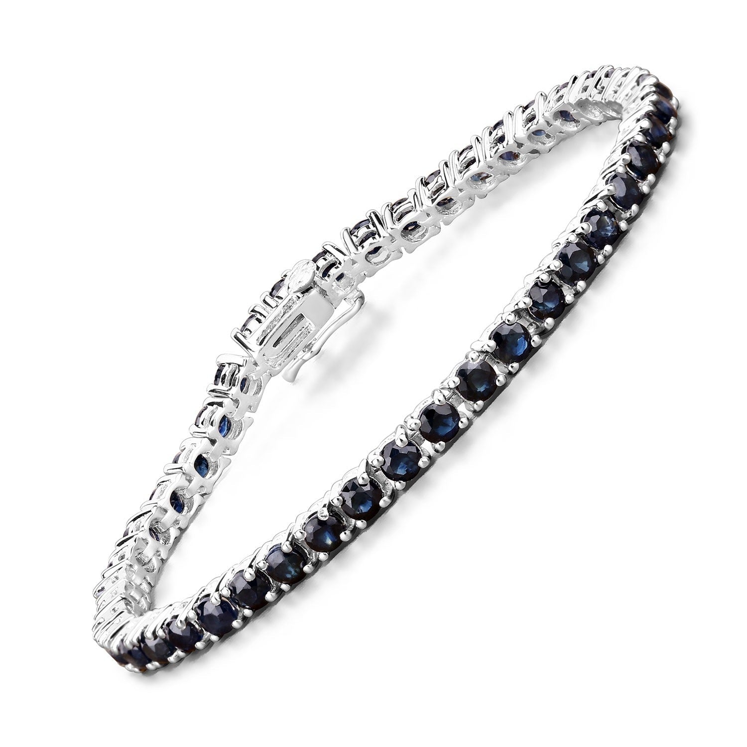 Sterling Silver Tennis Bracelet with Natural Blue Sapphire Stones for Women