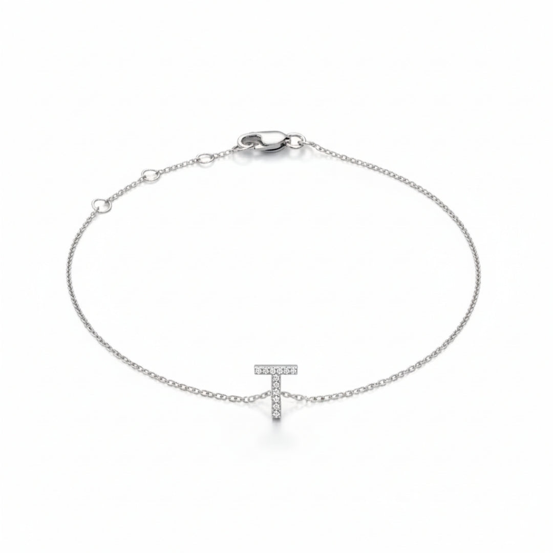 The initial pendant, designed with an adjustable 15–17 cm bracelet length, the piece ensures a perfect fit. A secure lobster clasp keeps it in place, while the lightweight build of 0.6–0.9 grams makes it comfortable for all-day wear. Perfect for casual outfits, professional settings, or evening events, this diamond letter bracelet becomes a versatile part of any jewelry collection.
