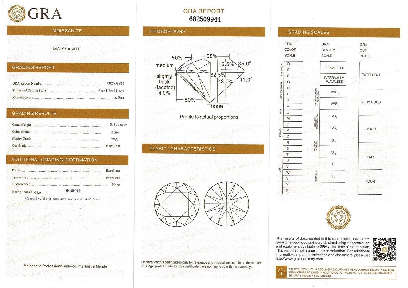 These stunning Cyan Blue Moissanite Stud Earrings are set in 925 Sterling Silver with 5mm Round Shaped stones. Our Blue Moissanite is certified genuine with a certificate included, and sparkles in a mesmerizing shade of blue-green.