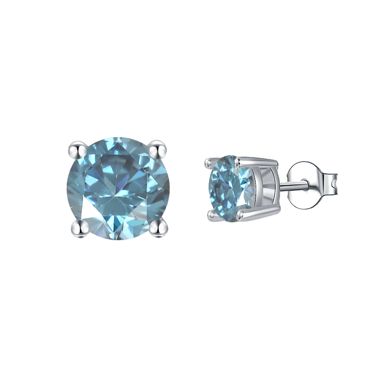 Fine Color Jewels Sterling Silver Cyan Blue Moissanite Stud Earrings 1 carat Blue Moissanite in Sterling Silver