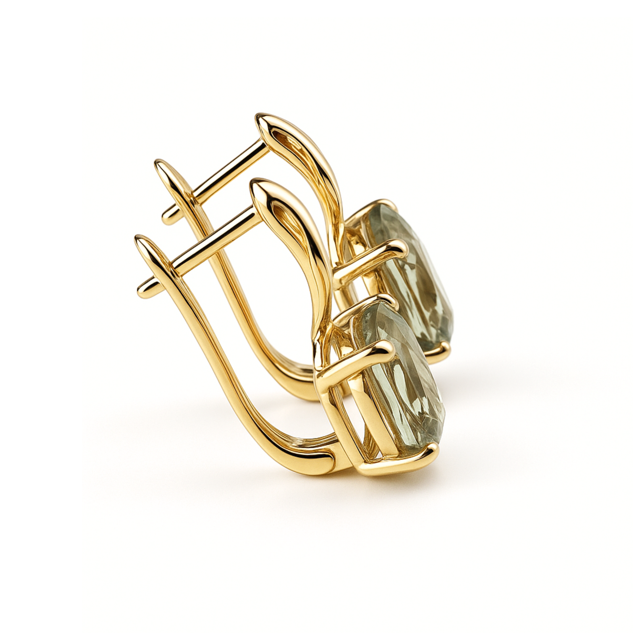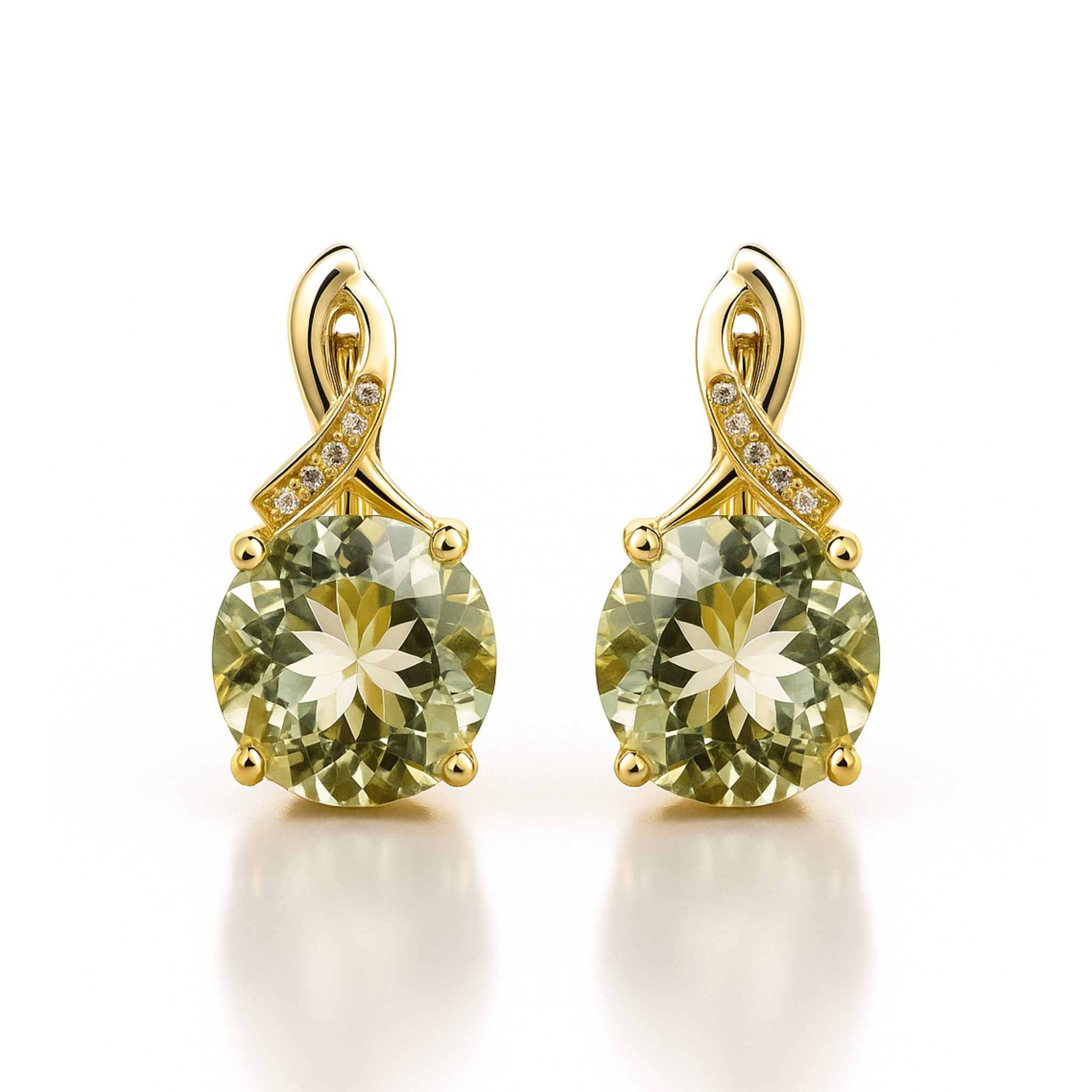 Green Amethyst, also known as Prasiolite, has a history linked to calm thinking and balanced energy. Many choose Green Amethyst Jewelry for its association with clarity and steady focus. The round cut supports symmetry, which many wearers find grounding. This connection makes the earrings appealing to women who prefer silver gemstone earrings with quiet meaning. Green Amethyst also links with February birthstone traditions, making the design suitable for buyers seeking February birthstone earrings in a fresh shade. The white topaz accents add a clear contrast that pairs well with the Green Amethyst tone. Many U.S. buyers enjoy gemstone earrings with mixed stones for easy styling. The warm tone of Yellow Gold Vermeil Statement Earrings appeals to women who want a soft gold finish over durable sterling silver. The 14K Gold Plated Prasiolite Dangle Earrings structure fits preferences for clean drop silhouettes.