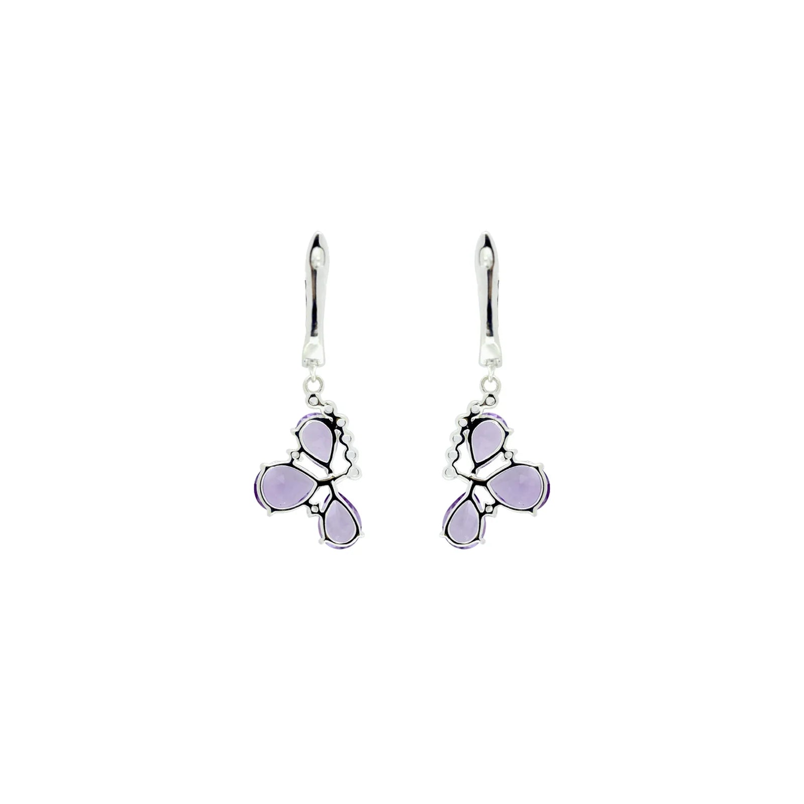 Natural Amethyst Three Stone Silver Dangle Earrings