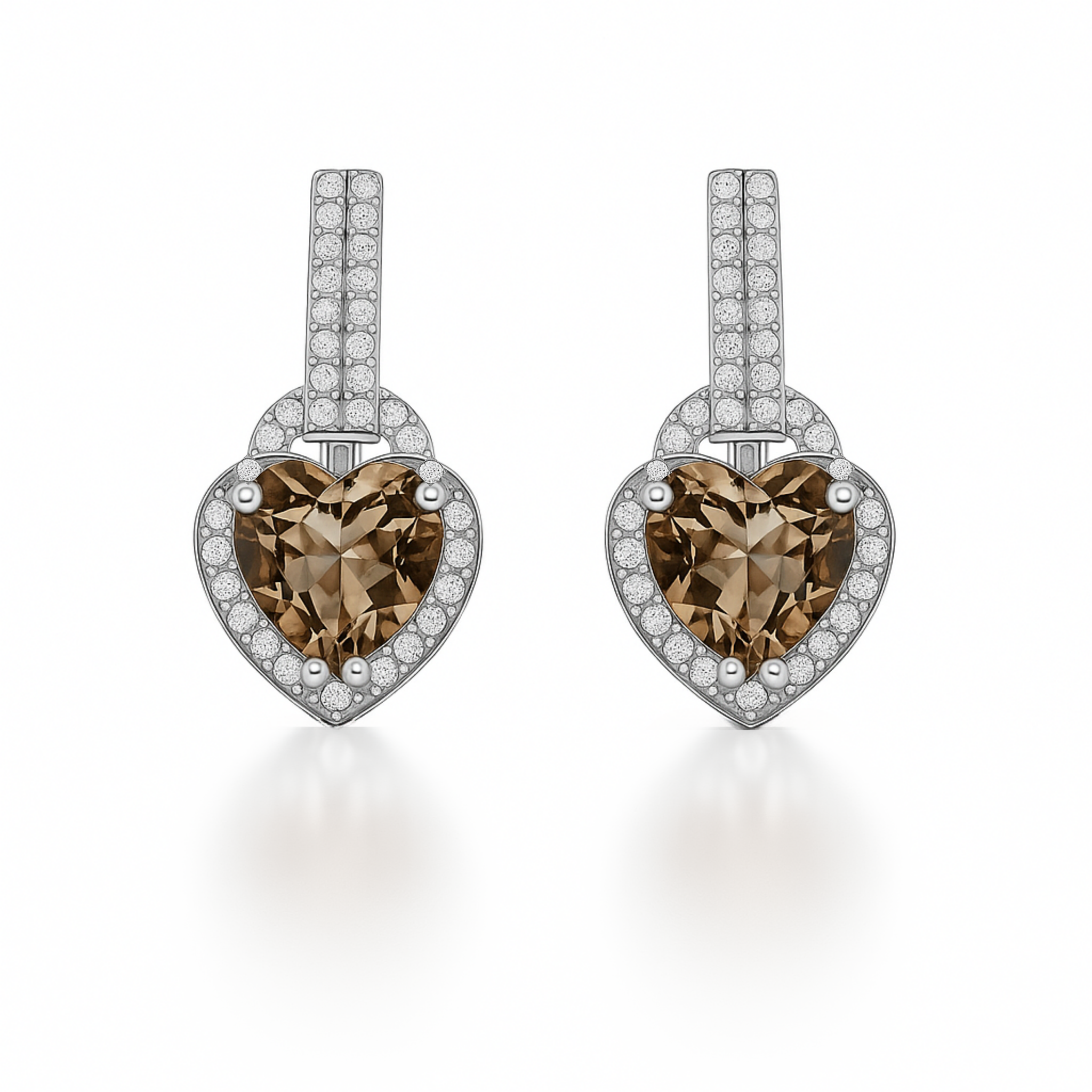 Natural Brown Quartz Heart Sterling Silver Earrings