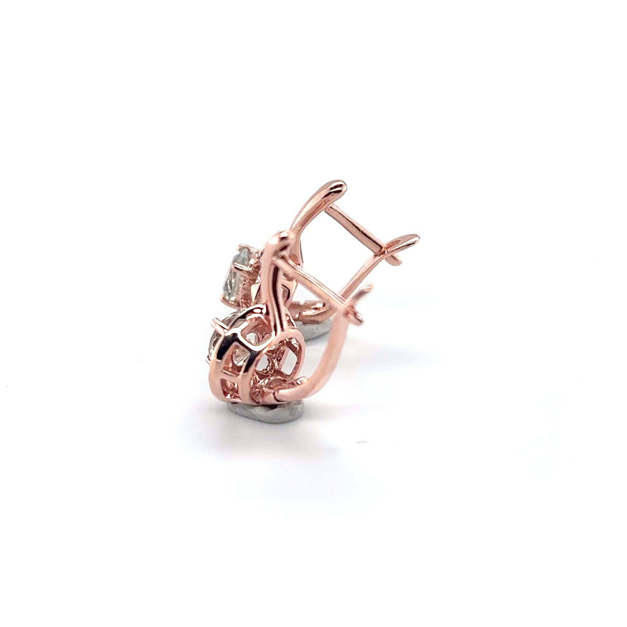 These green Prasiolite Earrings are crafted in 925 sterling silver with a rose gold plating suited for everyday use and short events. The pair features two round Green Prasiolite stones, each measuring 5.0 mm and weighing 0.760 carats. The Floral Earrings design also includes 16 round white topaz stones, each measuring 1.0 mm in diameter and weighing 0.080 carats. The earrings carry a gross weight of 3.252 grams and a net weight of 2.824 grams.