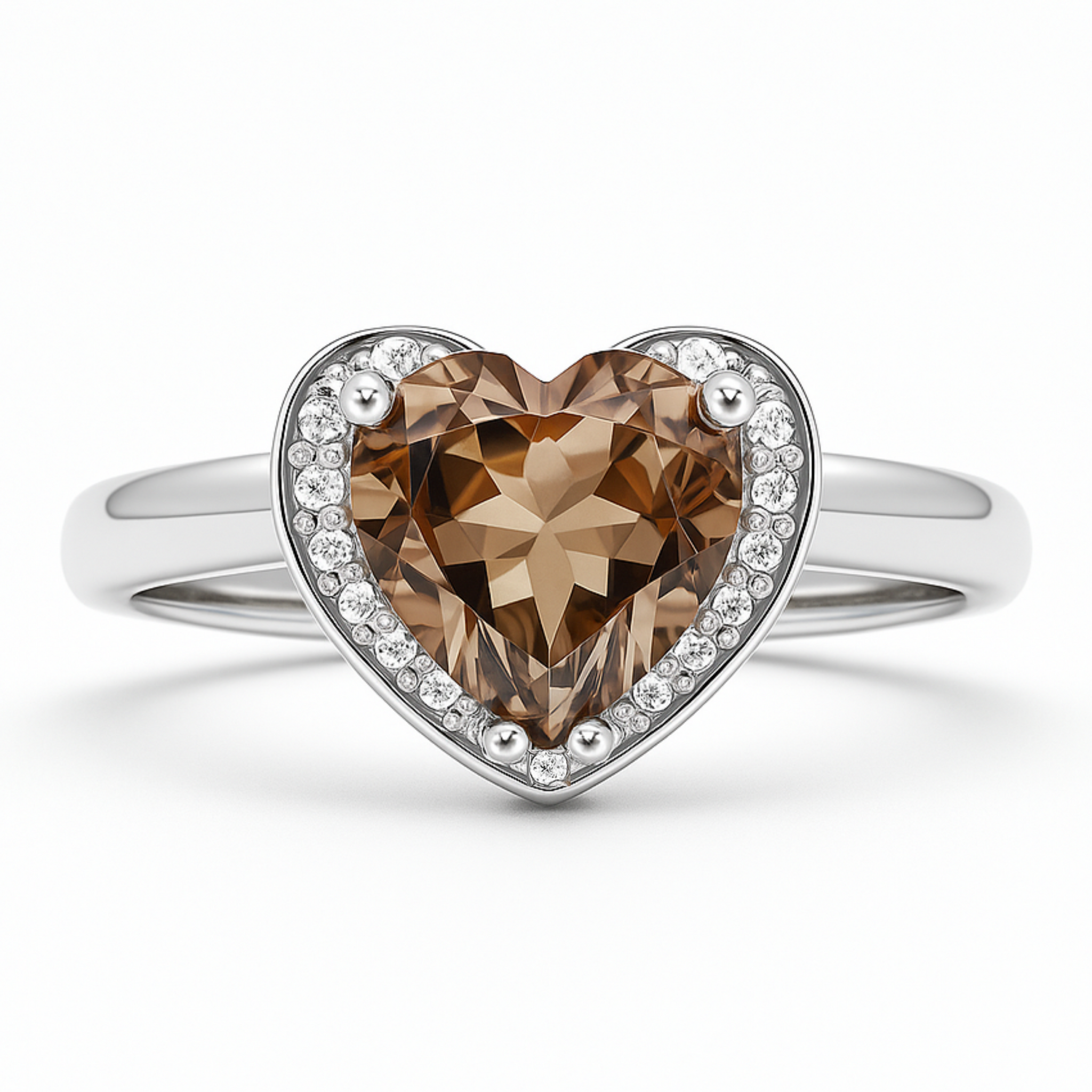 Natural Brown Quartz Sterling Silver Heart Halo Ring
